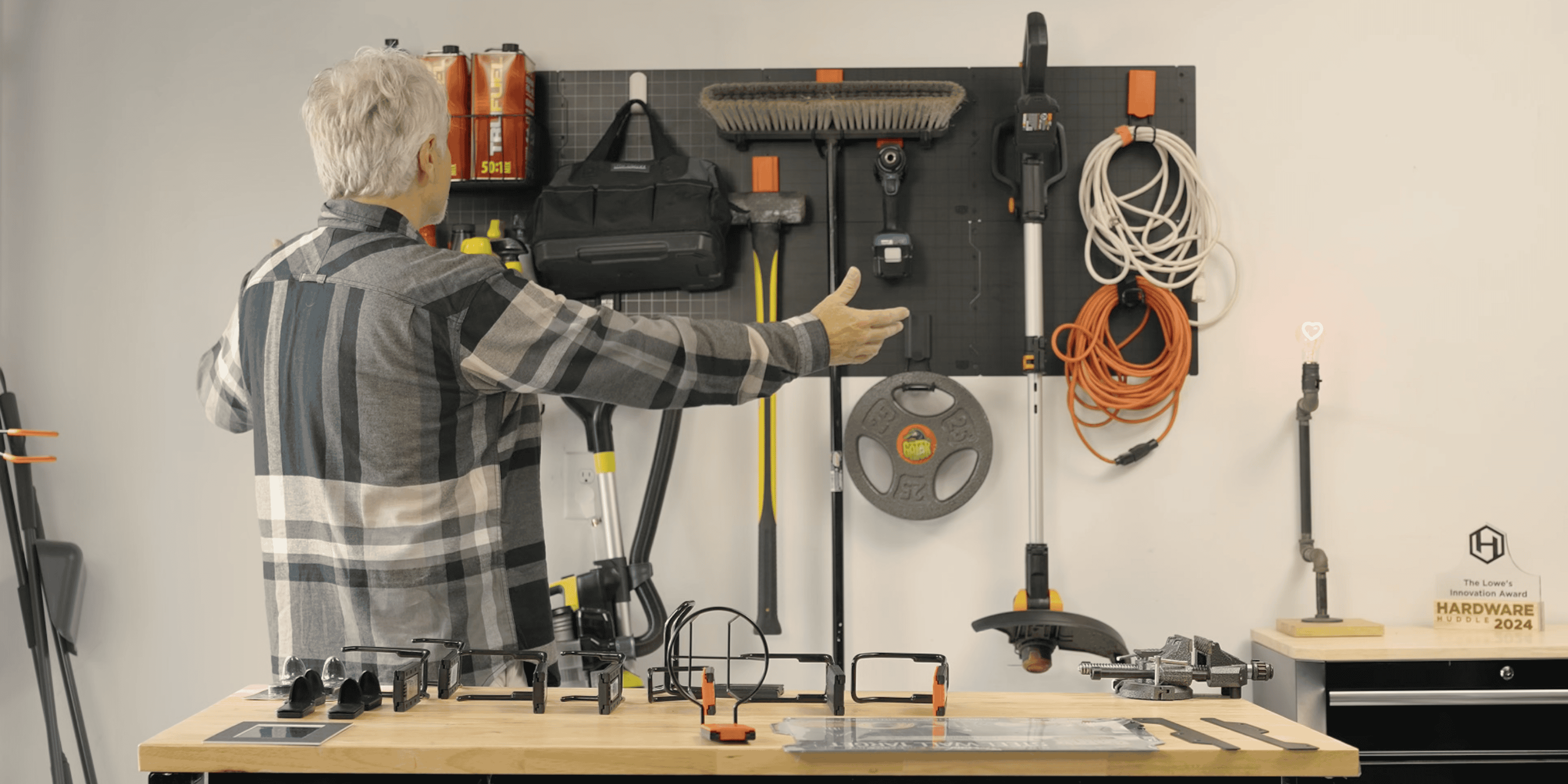 Our steel wall panels are a fantastic alternative to slat wall or rail systems. They are easy to install and you can fit panels together to configure as wide or as deep as needed. Every inch of space is available to organize the things you want to hang.